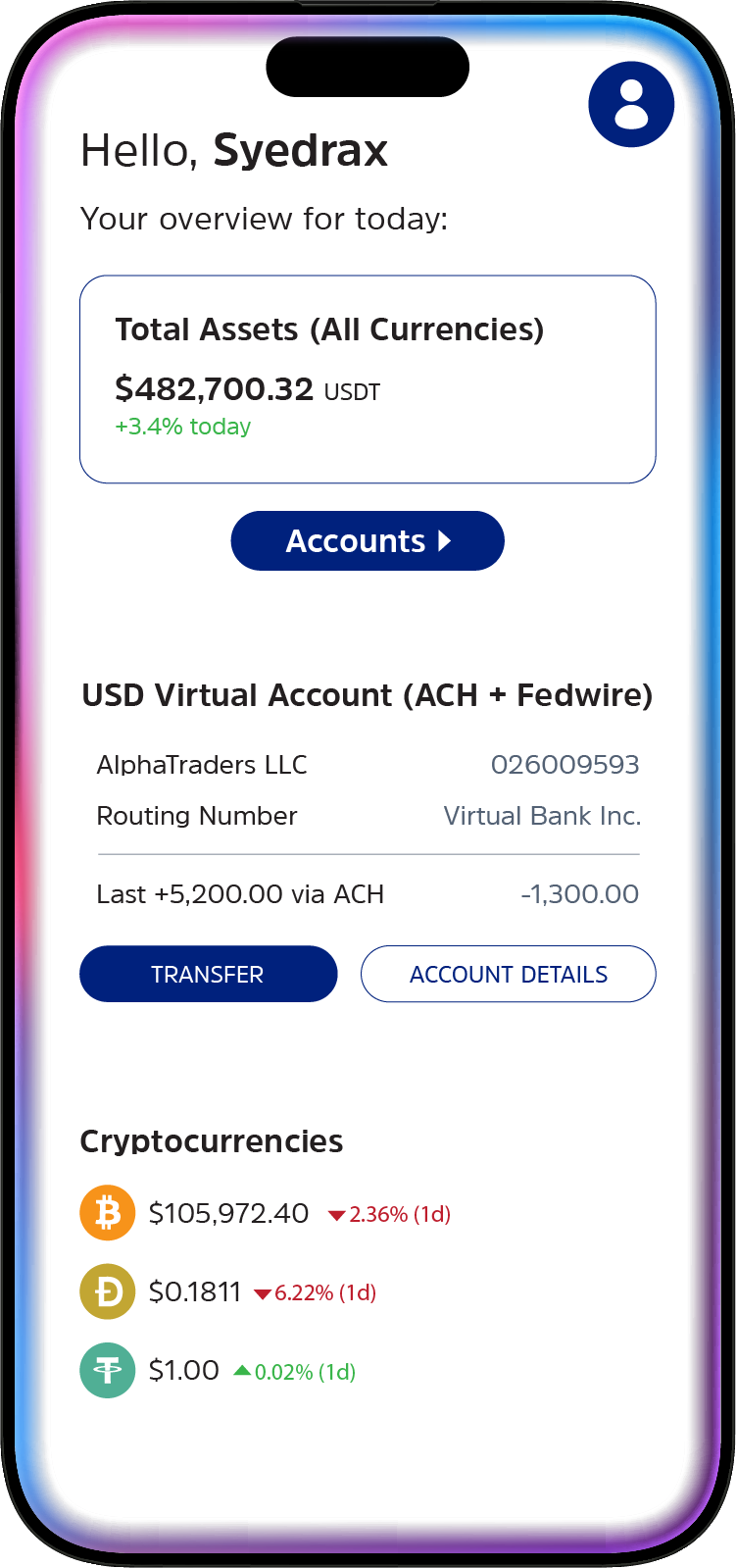 USD named virtual accounts (ACH + Fedwire) for your merchants